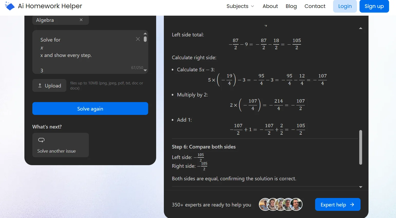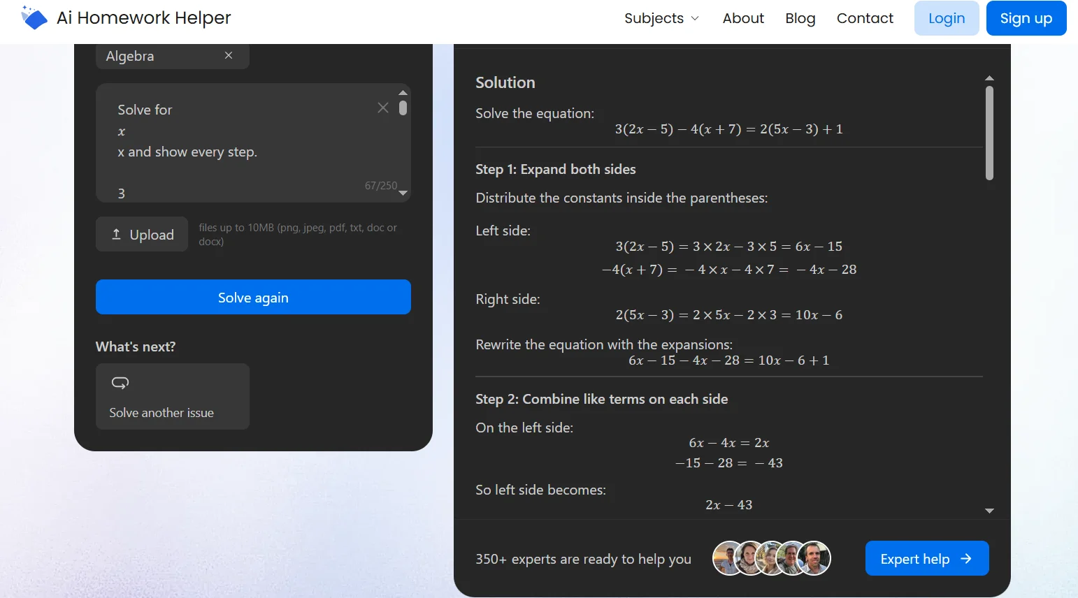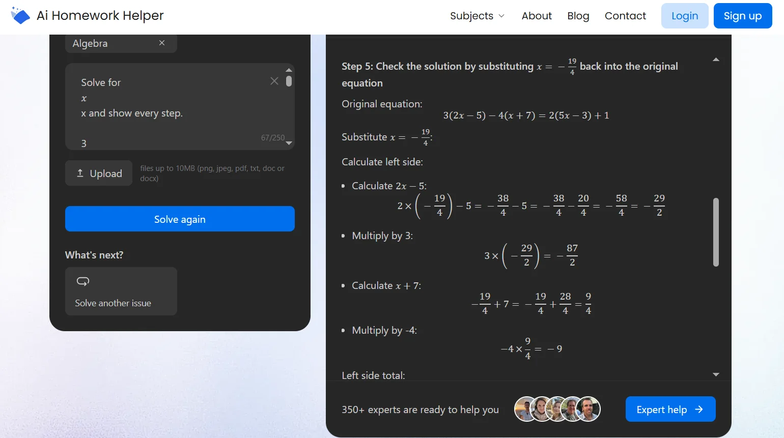 The site leans hard on step-by-step breakdowns, so it feels more like a checker and explainer than a generic chatbot response. That matters when you’re trying to understand why the answer works, not just copy it.
