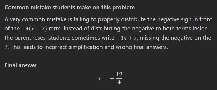 If your error is something classic, like distributing a negative sign incorrectly or combining unlike terms, the explanation makes that obvious. Then you can paste your own work and ask, “Which line is incorrect?” That’s a much more trustworthy workflow than asking for a final answer and hoping it matches.